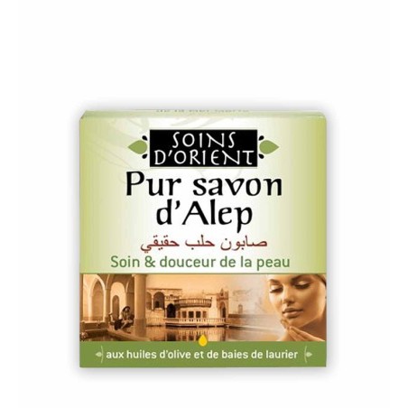 Questo sorprendente sapone è prodotto in modo artigianale, secondo una tradizione immutata da secoli. Il sapone di Aleppo è fatto con olio di oliva, che viene cotto lentamente in una grande caldaia; è poi arricchito con olio di alloro ed essiccato naturalmente all'aria per diversi mesi. Utilizzato per il bagno, produce una schiuma di estrema morbidezza, ed è ideale per la cura e la protezione della pelle.
